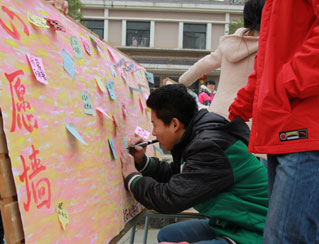 12月15日,南昌大學護理學院在醫(yī)學院新世紀廣場舉行了2013大學生社會實踐評選成果校園巡展。此次巡展共展出17塊展板,其中包括6塊獲獎優(yōu)秀團隊介紹板、6塊“愛佑童心”志愿者隊“愛佑之行”展板、3塊“愛·一起來”宣傳海報板、一塊留言板和一塊心愿墻展板。展板形象展現(xiàn)了“愛佑童心”三下鄉(xiāng)團隊實踐全過程,從前期的緊張準備、中期實踐到后期的精心總結,將“愛佑童心”六支實踐隊伍的活動詳細地展現(xiàn)給大家。最后,參觀者也在心愿墻為先心患兒寫下最真摯的祝福,“愛佑童心,加油”“祝愿先心患兒早日康復”“藍天白云之下,我們與愛佑同行”等等祝福心愿擠滿心愿墻。