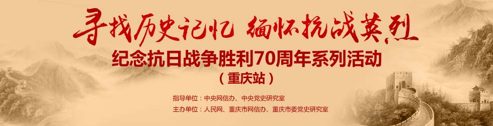 •   8月19日,由中央網(wǎng)信辦、中央黨史研究室指導(dǎo),人民網(wǎng)聯(lián)合8省區(qū)市共同主辦的“尋找歷史記憶·緬懷抗戰(zhàn)英烈——紀(jì)念抗日戰(zhàn)爭(zhēng)勝利70周年系列活動(dòng)”走進(jìn)重慶。 【詳細(xì)】