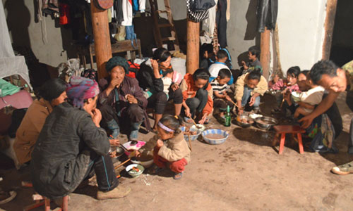 對于偏遠山區(qū)的貧困與落后,雖然隊員們早有心理準備,但實際到了兩河口鎮(zhèn),當?shù)仄D苦的條件還是遠遠超出了這群在大城市里生活慣了的年輕人的想象。沒有網(wǎng)絡(luò),白天斷電,有時為了發(fā)送一條短信打一個電話需要走很遠的路才會有信號。飲食也是一大挑戰(zhàn),實踐隊的伙食是清一色的土豆,而且一天只有兩頓土豆,這是當?shù)氐牧曀。沒有桌子,所有人就在地上吃,沒有筷子就用手。煮的土豆吃膩了就吃烤土豆,扒皮后蘸點調(diào)料,吃得滿嘴滿手黑乎乎的。對于這樣的飲食方式,隊員們一開始的確不適應(yīng),覺得有點落后和不衛(wèi)生,但面對彝家人的熱情好客,隊員們也就入鄉(xiāng)隨俗,和彝家人一起享用起大山里的土豆來。為了感謝隊員們的付出,彝家人偶爾也會給隊員們做蕎麥餅換換口味。