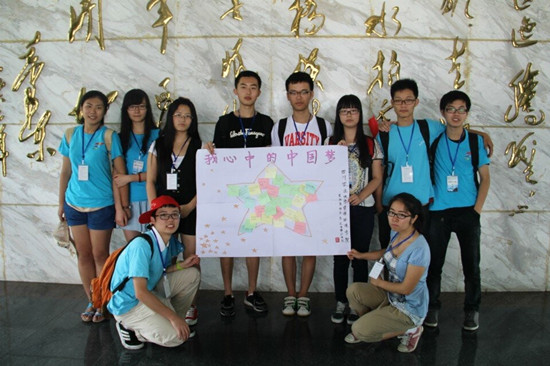 隊(duì)員們向游客分發(fā)便利貼,收集他們的中國夢(mèng),與便利貼展示板合影。
