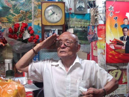 在陳相德家中,墻上掛的是中國地圖、中國工農(nóng)紅軍地圖,堂屋里掛著中國偉人畫像、開國十大元帥畫像,顯示出他對抗戰(zhàn)歷史的銘記。陳相德在抗日戰(zhàn)場上穿越槍林彈雨,沐浴硝煙彌漫,親眼目睹過日軍飛機(jī)被擊落。現(xiàn)在提起當(dāng)年的情形,他仍無比激動。