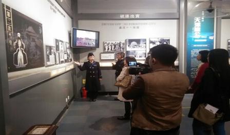 人民網(wǎng)“尋找歷史記憶 緬懷抗戰(zhàn)英烈”采訪團(tuán)成員在長春偽滿皇宮博物院采訪。