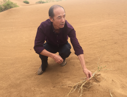 “我們每進(jìn)一步,沙丘就后退一步,F(xiàn)在我們看到的綠色帶,曾經(jīng)都是沙漠。”在治沙區(qū),每一種植物他都如數(shù)家珍。他告訴記者,自己一輩子都在跟沙漠打交道,在探索中他發(fā)明了“便捷式沙漠造林器”。使用這種工具只需腳一踩就能輕松完成種植,以前每人每天種植200株,現(xiàn)在提升為400株,還保持了種子所需的水分。