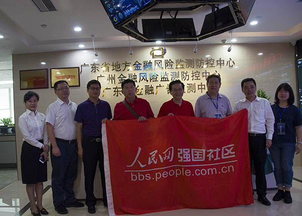 調(diào)研組一行在廣州市金融風險監(jiān)測防控中心交流調(diào)研后留影。(人民網(wǎng)記者 耿寬謀 攝)