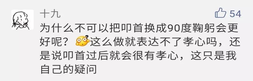 網(wǎng)友“最酷的仔啊”:有很多表達感恩又不失古蘊的方式,為什么偏偏選擇了叩首這種極端的方式?