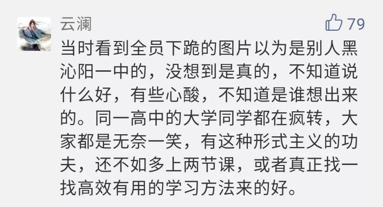 視頻發(fā)布后引發(fā)了網(wǎng)友討論。有人質(zhì)疑此活動過于“形式主義”,遭學校官號怒懟:思維是不是有毛?11月21日,該所學;貞(yīng)稱,校領(lǐng)導(dǎo)在活動前不知情,是高三年級安排的,下跪只是一種形式,想教孩子們學會感恩。