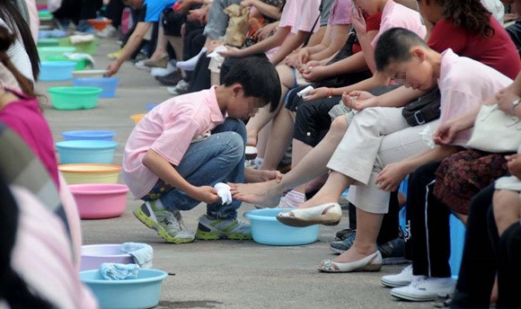 某校組織學生為父母洗腳(圖片源自網(wǎng)絡(luò))