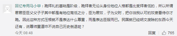 有網(wǎng)友批評活動作用:“跪拜禮是封建階級文化產(chǎn)物,抹殺了獨立人格?”