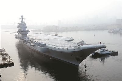 2018年5月13日,我國(guó)第二艘航母從大連造船廠碼頭啟航,赴相關(guān)海域執(zhí)行海上試驗(yàn)任務(wù)(圖片來(lái)源:新華社)