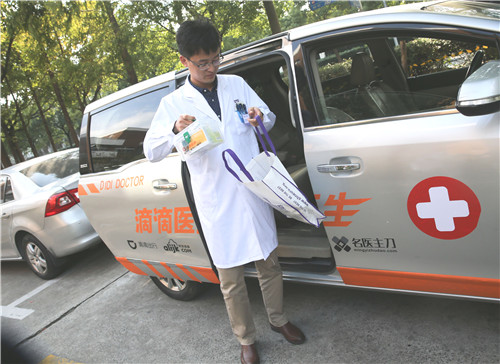即將上門為市民問診的“滴滴醫(yī)生”在整理藥箱(來源:東楚晚報)