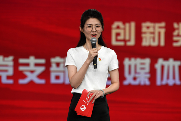 人民日?qǐng)?bào)社機(jī)關(guān)黨委常務(wù)副書記魏建周向選手提問(wèn)